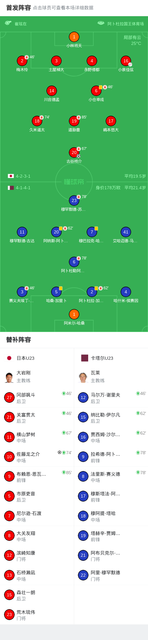 北京时间1月14日,U23亚洲杯小组赛第三轮,日本U23对阵卡塔尔U23。上半场小泉佳弦传中,古谷柊介头球破门。下半场哈桑出球失误,佐藤龙之介低射破门。最终U23日本2-0战胜卡塔尔U23全胜头名出线。日本U23在1/4决赛的对手是约旦U23。