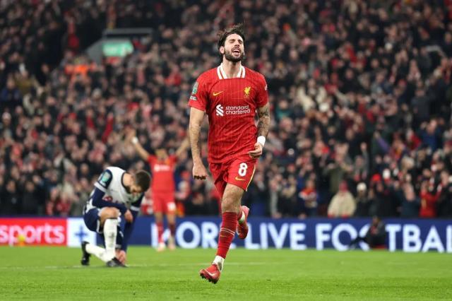 全场比赛结束,利物浦4-0战胜热刺,总比分4-1晋级,将在联赛杯决赛中对阵纽卡斯尔联。