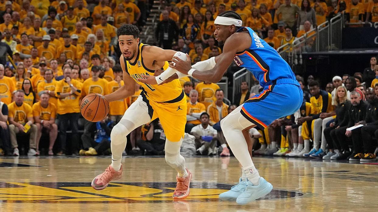 NBA总决赛继续进行中,雷霆与步行者展开系列赛G6的对决。攻克天王山之后,OKC夺下了赛点。距离夺得总冠军,雷霆只剩一步之遥。大比分2比3落后的印第安纳,期待在主场强势反弹,并且致力于将系列赛拖入抢7。背水一战,处在被淘汰悬崖边缘的步行者众将,已经退无可退。此役,小腿拉伤的哈利伯顿继续带伤作战,并且与内姆哈德、内史密斯、西亚卡姆、特纳搭档首发。雷霆沿用了亚历山大、杰伦威廉姆斯、霍姆格伦、多尔特与哈尔滕施泰因的首发五虎。亚历山大、杰伦威廉姆斯、霍姆格伦能否延续出色表现,非常值得期待。